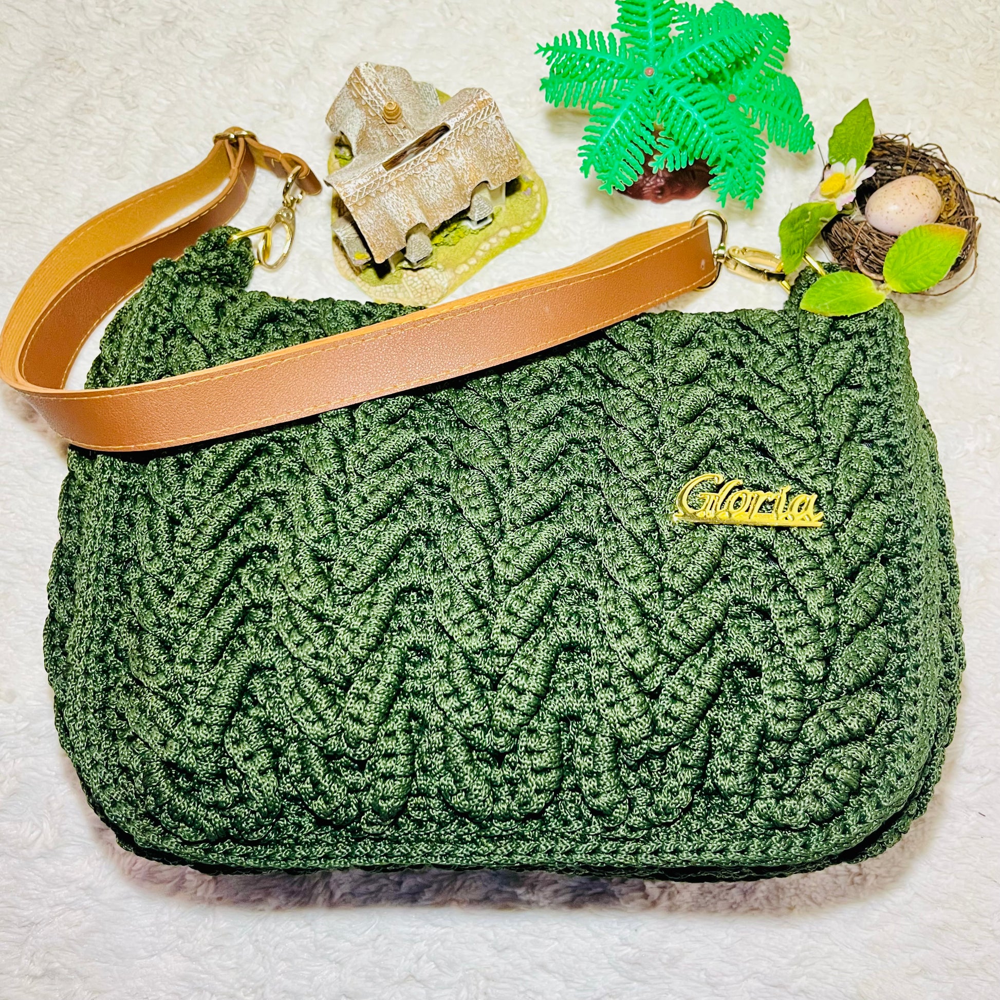 Gloria Handmade Crochet Bag – Forest Green Elegance